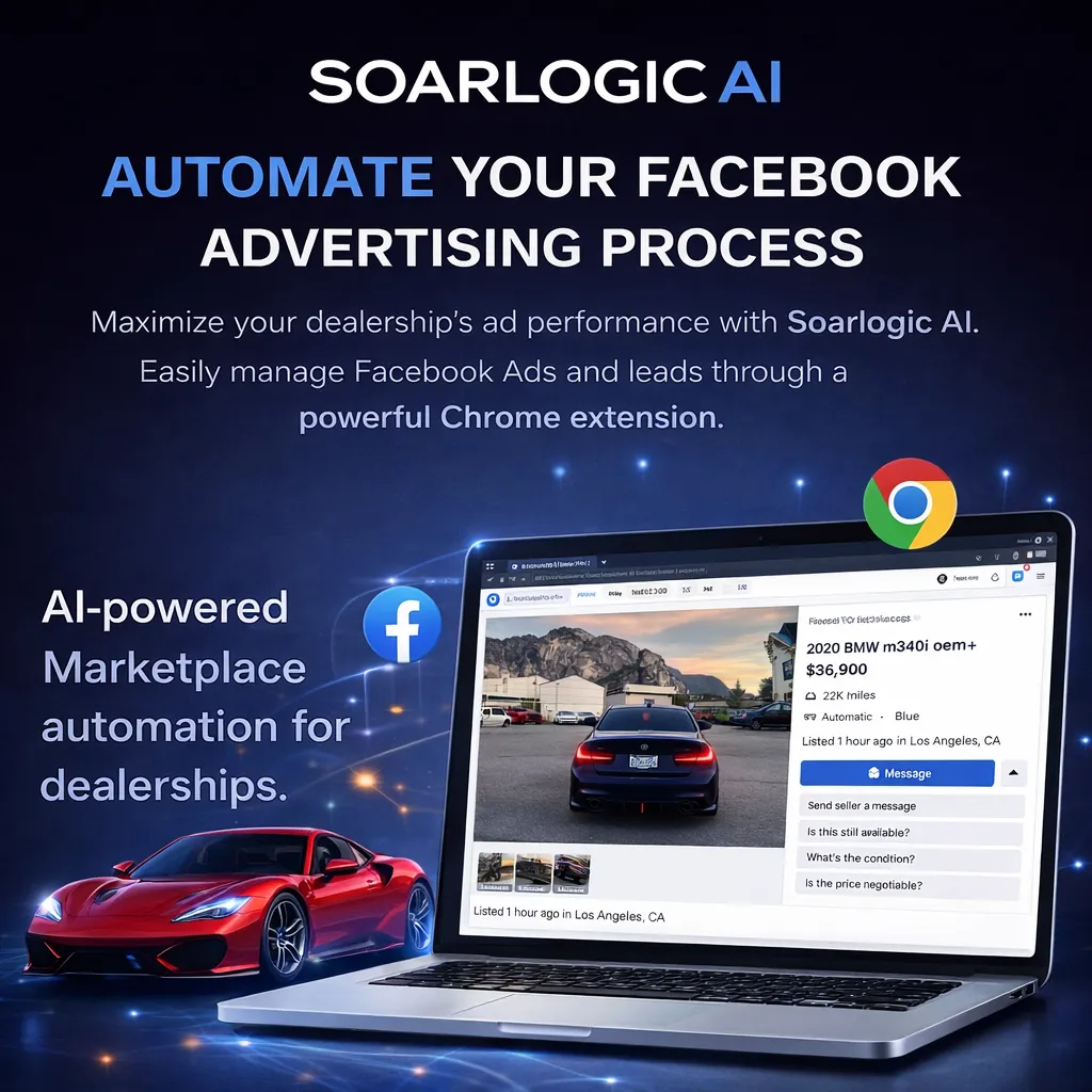 SoarLogic AI helps businesses automate their Facebook Marketplace listings. Using our Chrome Extension, you can publish listings with one click or paste multiple links to automatically generate and post listings for you.